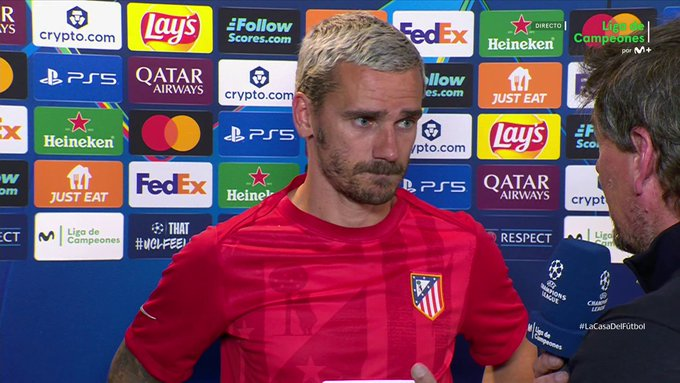虎扑04月14日讯欧冠1/4决赛次回合,马竞主场1-2巴萨,总比分3-2晋级半决赛。格列兹曼赛后接受采访。